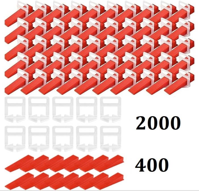 Sistemul de nivelare a placilor contine 2000 de distantiere de placi, 400 de pene de placi, in total 2400 de bucati. Cantitatea este suficienta pentru a va satisface nevoile si pentru a va usura lucrul cu gresie.